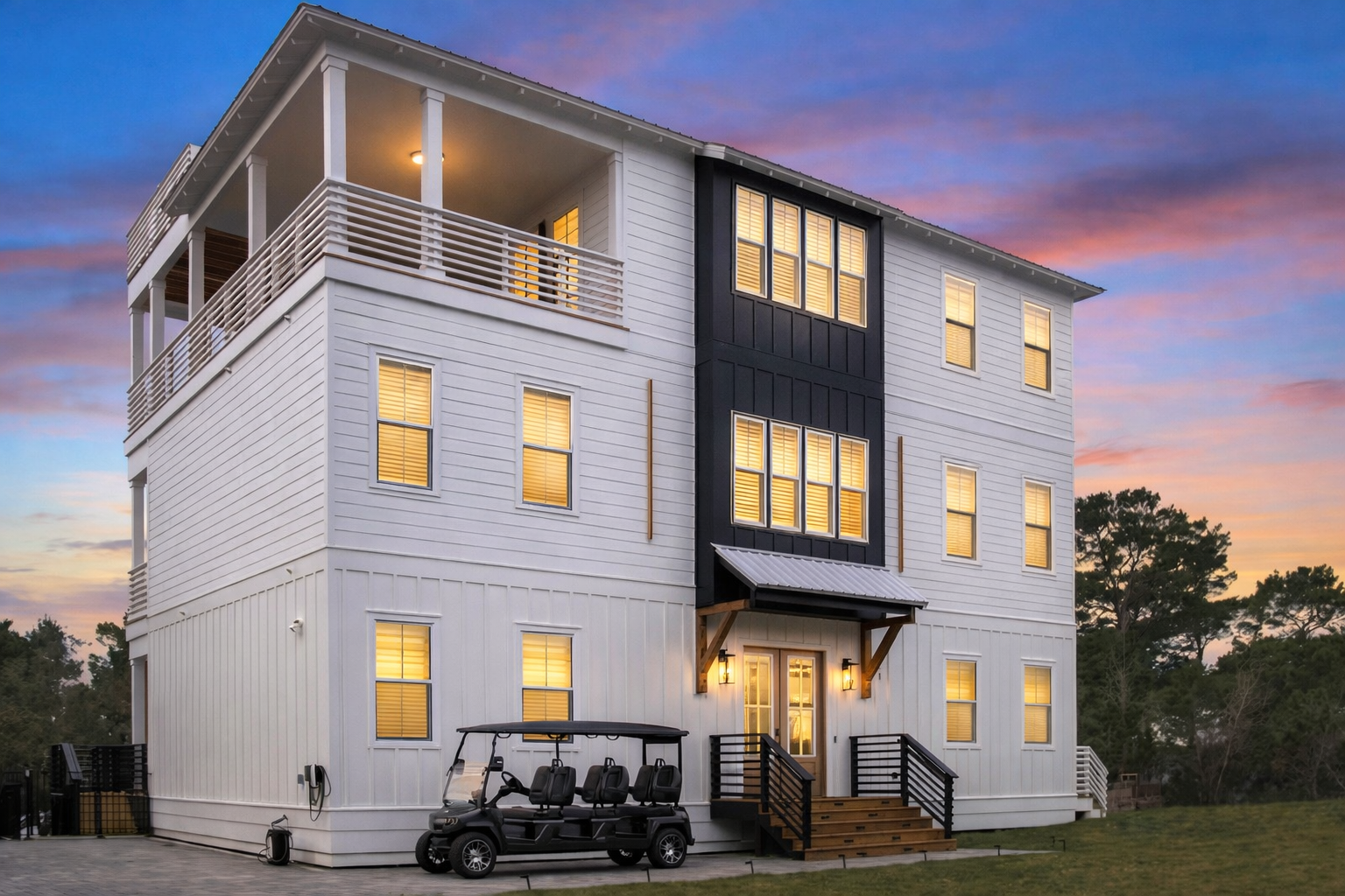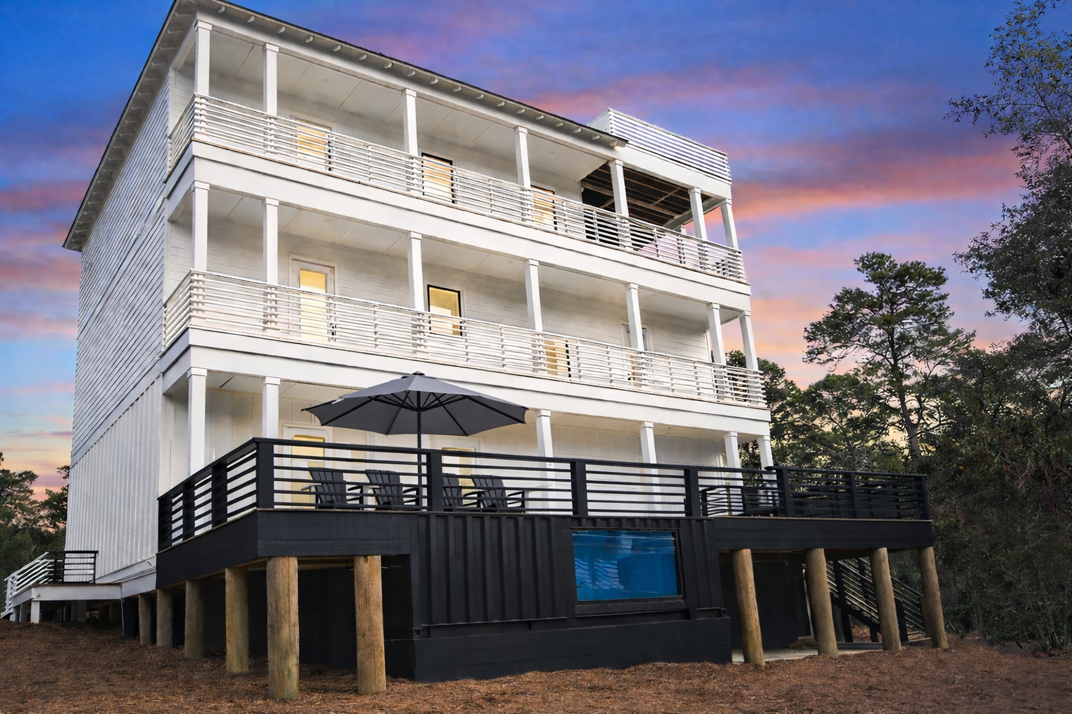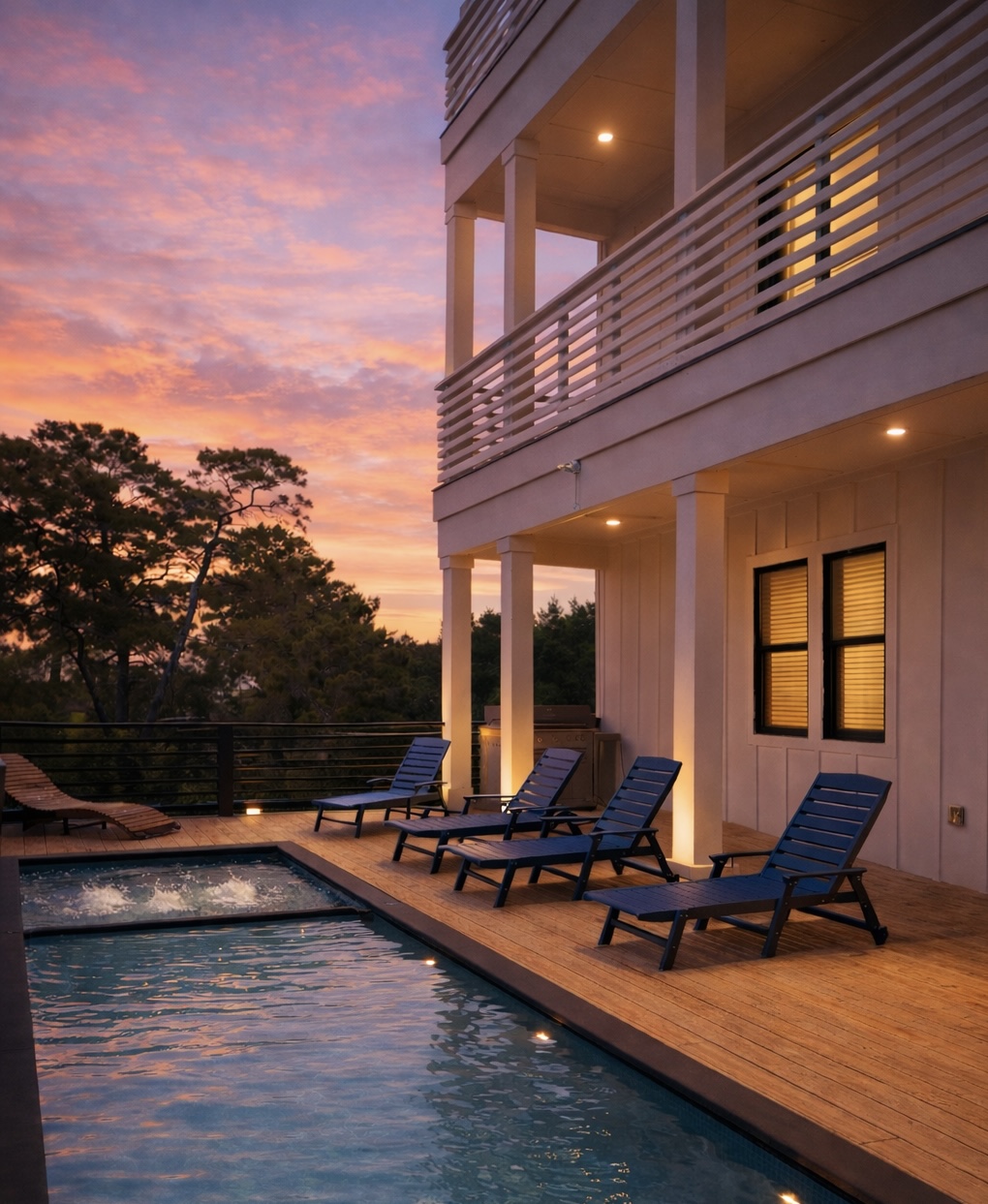 Welcome to The Dune Retreat, your serene coastal sanctuary! This 8-bedroom, 8-bathroom home boasts 4,500 sqft of luxury, featuring a modern shipping container pool and spa, a game room, and a cozy movie room. Nestled among trees, you’ll enjoy privacy while listening to ocean waves and birds chirping!